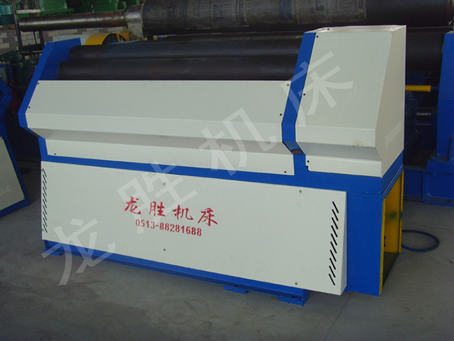 该机结构形式为三辊非对称式,上辊为主传动,下辊垂直升降运动,以便夹紧板材,并通过下辊齿轮与上辊齿轮啮合,同时作为主传动;边辊作倾升降运动,具有预弯和卷圆双重功能。结构紧凑,操作维修方便。