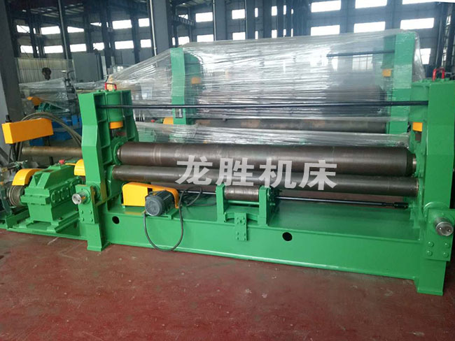 该机属于液压型三辊卷板机,用于常温状态下将各种容器用碳钢、低合金钢一次上料后不需调头即完成板材端部预弯、卷圆和矫圆等工序。 上辊可以垂直移动、水平移动。 预弯通过上辊水平移动,使上辊相对于下辊呈非对称位置来实现。